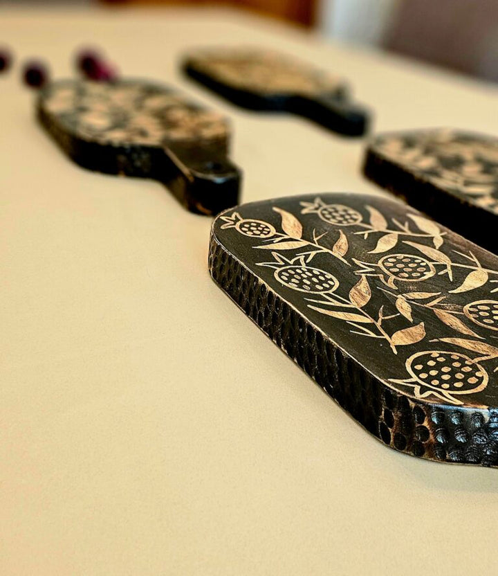 This platter is handcrafted using the traditional art of Batik on wood. Skilled artisans apply layers of wax in detailed, intricate designs using the traditional canting (chanting) tool, creating a unique and timeless piece. Customization for size is available upon request.