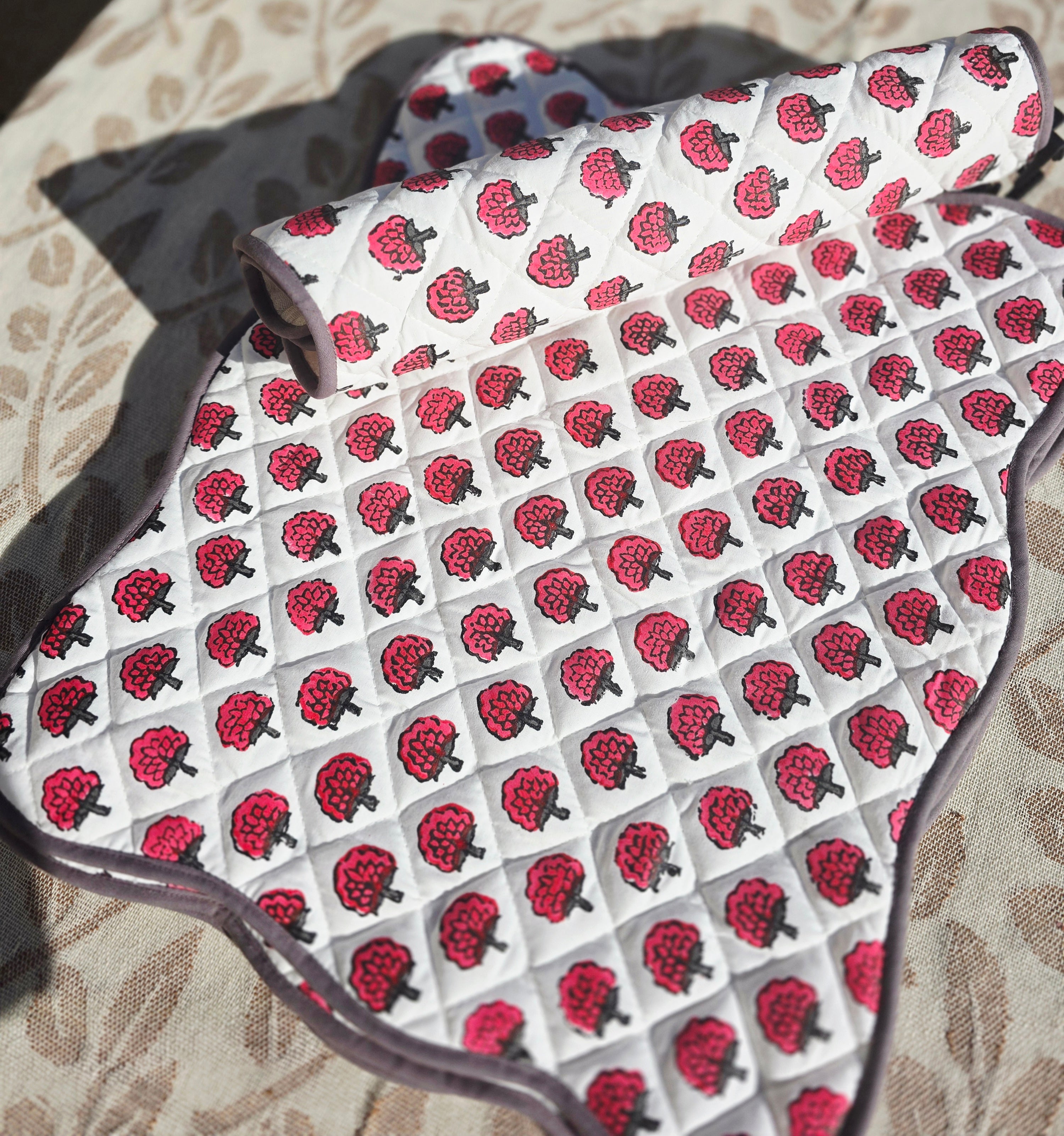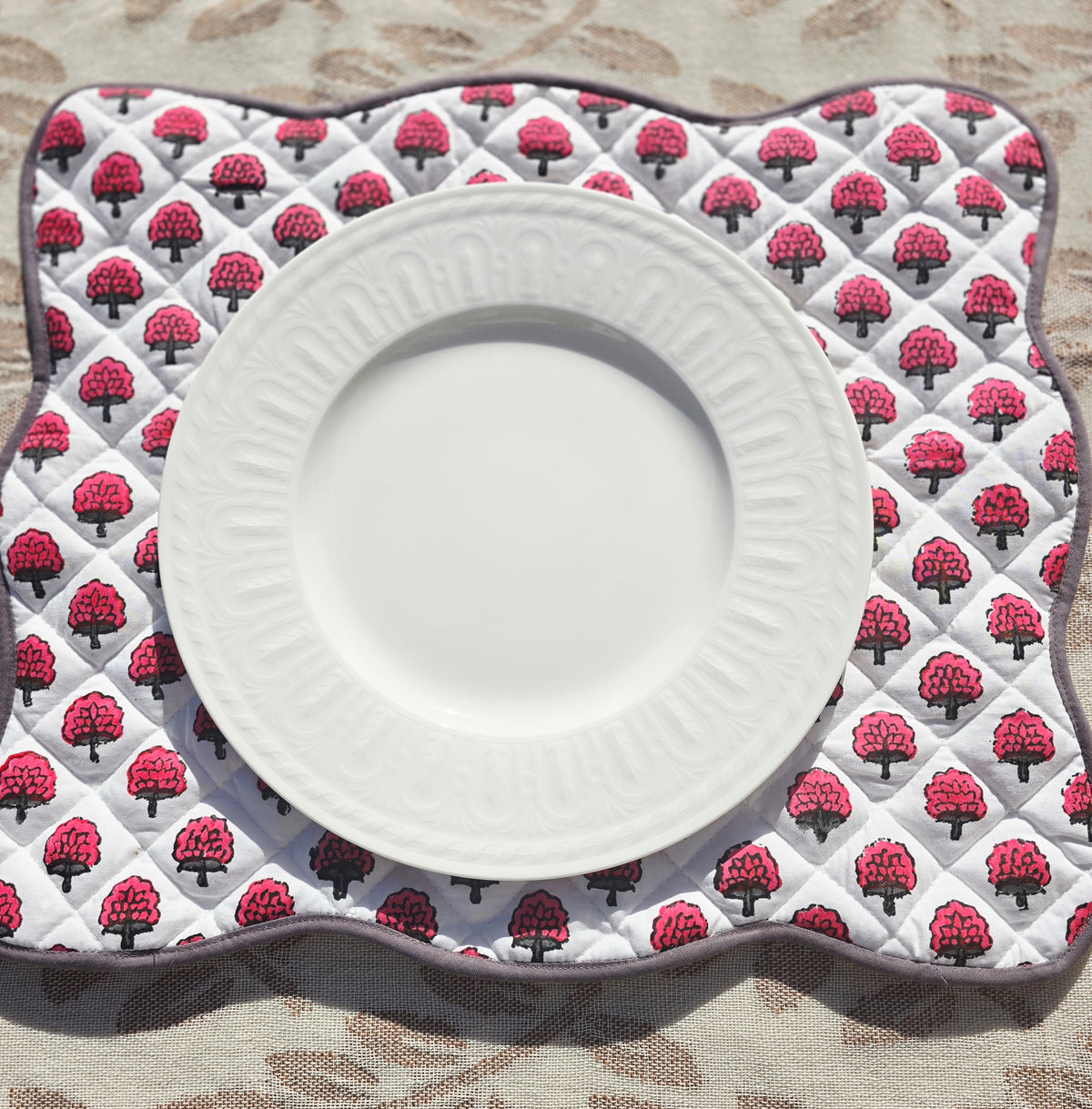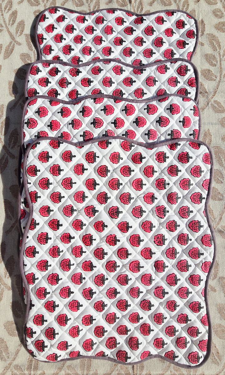 Raspberry Block Print Cotton Quilted Placemat with Scalloped Sides