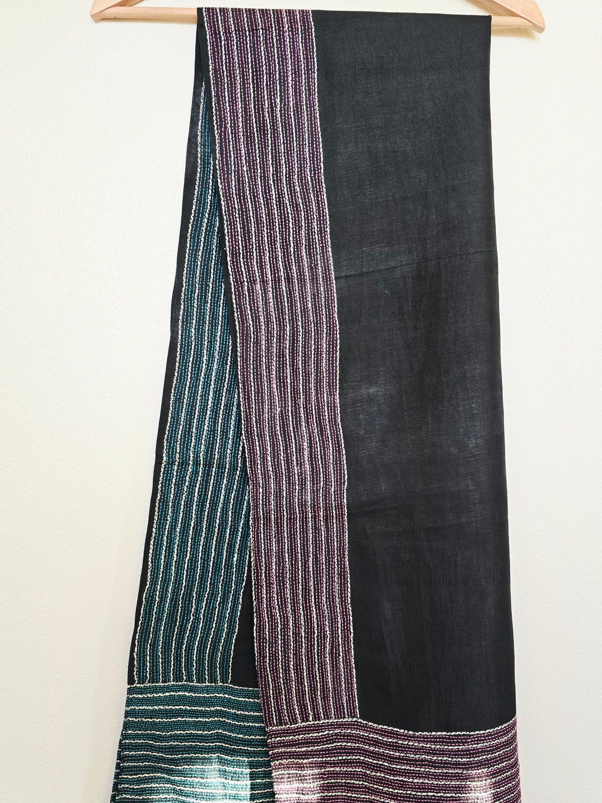 Discover a one-of-a-kind hand-embroidered Kantha scarf featuring intricate floral motifs and traditional stitching. Ethically handmade by artisans, lightweight, and perfect for gifting.
