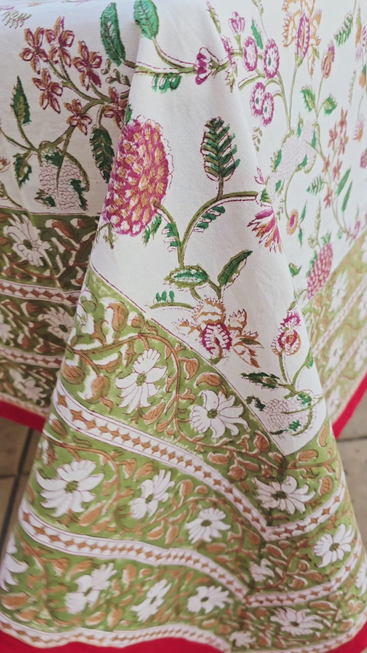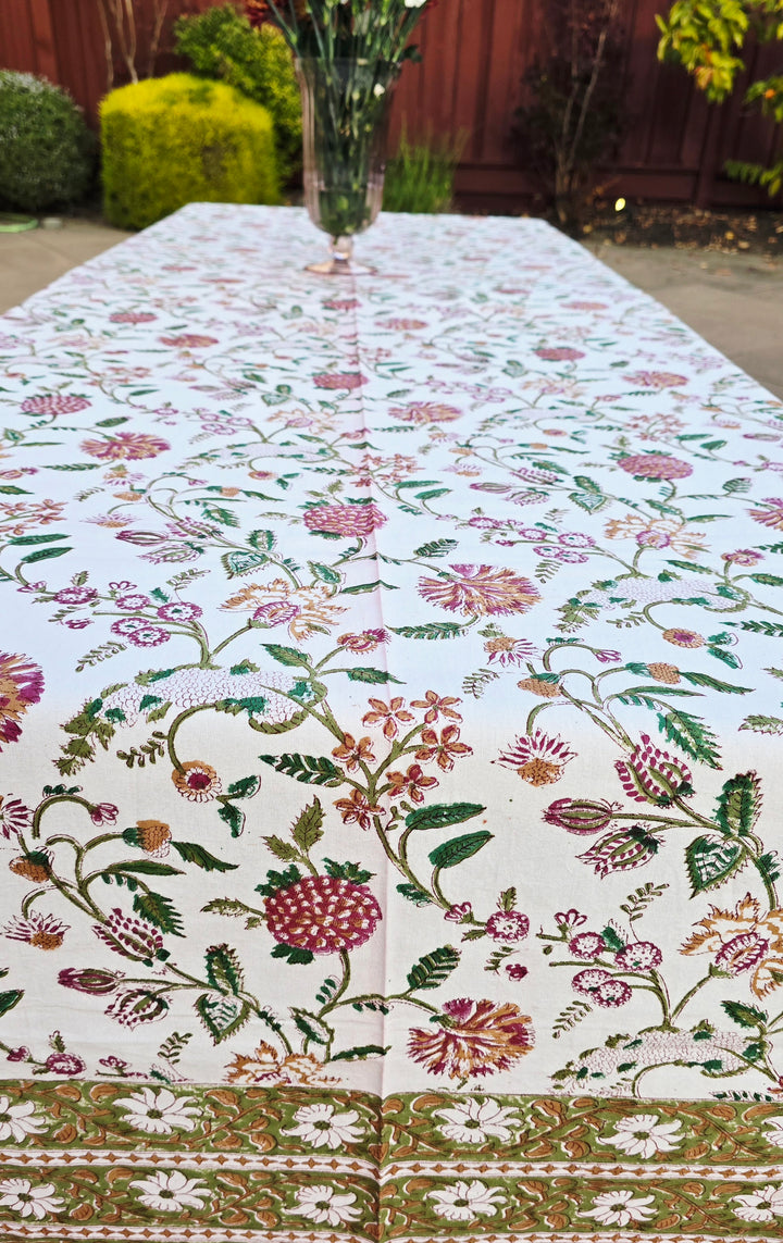 Floral Medley Block Printed Table Cloth