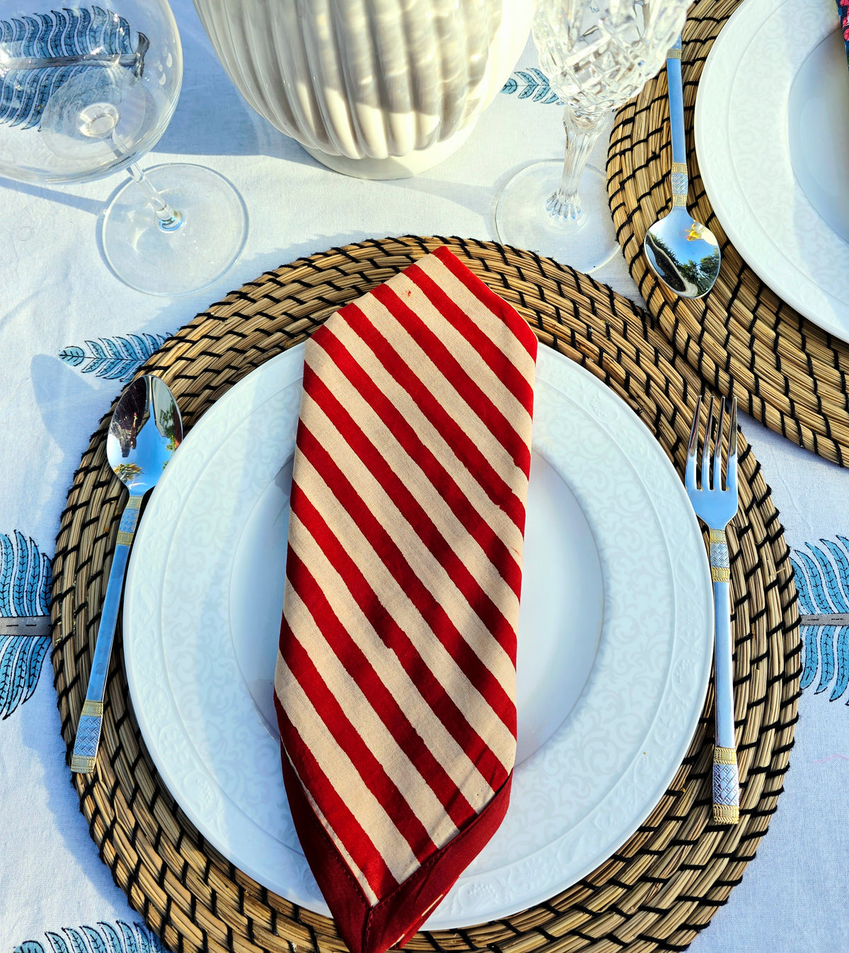 Maroon Stripe Pure Cotton Hand block Printed Napkin