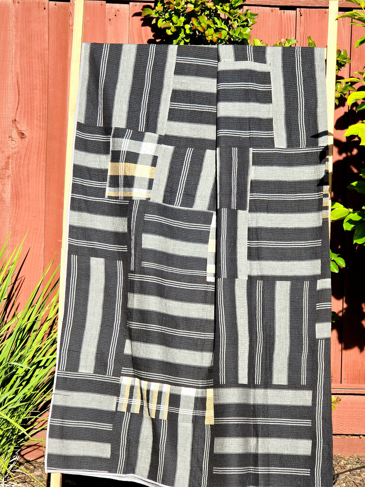 This white and black patchwork kantha throw is a celebration of traditional craftsmanship and thoughtful design. Hand-stitched using layers of soft cotton fabric, each piece is uniquely crafted using the kantha embroidery technique, creating a textured, quilted finish.