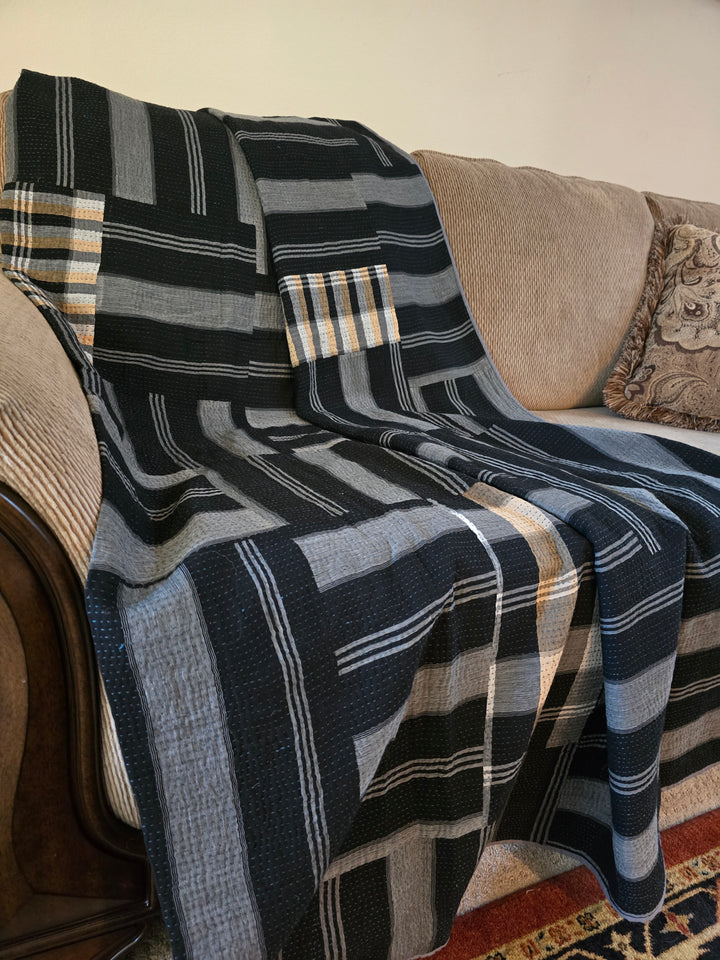 A handcrafted patchwork kantha throw made from layered cotton, blending tradition with timeless modern design.